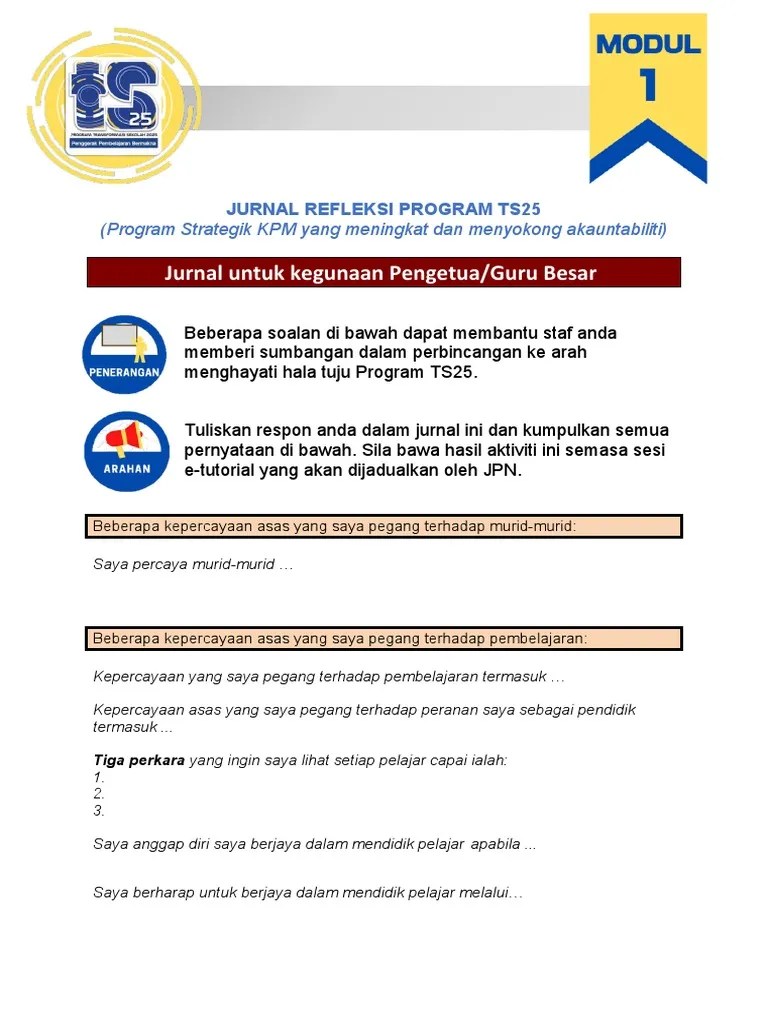 1.3.2 jurnal refleksi program ts25. Program transformasi sekolah 2025 (ts25) merupakan sebahagian daripada. Contoh jurnal refleksi latihan industri jurnal refleksi jiwa jurnal refleksi uin jakarta jawapan jurnal refleksi program ts25 jurnal . 3 hala tuju program ts25. Program transformasi sekolah 2025 (ts25) merupakan sebahagian daripada usaha kementerian pendidikan malaysia ke arah meningkatkan kemenjadian murid dan . Dan penilaian atau refleksi hasil projek.
