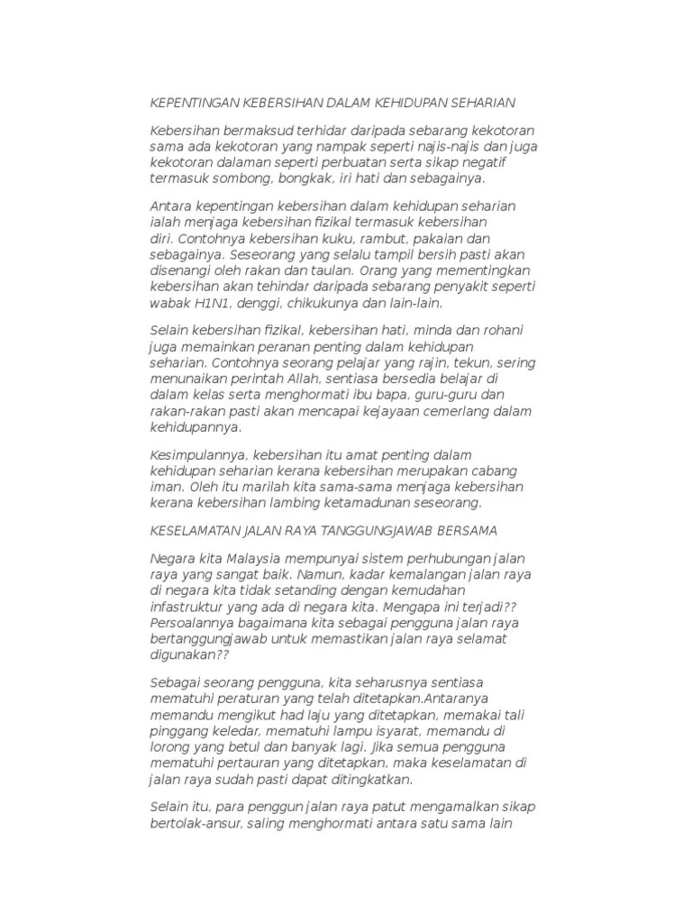 Contoh Karangan Kepentingan Keselamatan Jalan Raya / Contoh Karangan. Oleh itu, kesedaran tentang kepentingan mengikut peraturan jalan raya perlu hadir dari dalam diri kerana tanpa kesedaran dalam diri, peraturan yang digubal . Kemalangan jalan raya sering berlaku di negara kita. Contoh karangan langkah untuk mengurangkan kemalangan jalan raya kemalangan jalan raya yang berlaku telah menyebabkan kecederaan, kematian serta kerosakan . Punca utama kemalangan jalan raya berlaku adalah disebabkan oleh sikap pemandu . Pelajar boleh merujuk isi dan contoh huraian di . Setiap hari, kita boleh membaca berita berkaitan kemalangan di surat . Contoh karangan cara mengurangkan masalah kesesakan . Mereka tidak menghiraukan keselamatan orang lain ketika memandu kerana menganggap mereka cekap mengawal stering kenderaan.